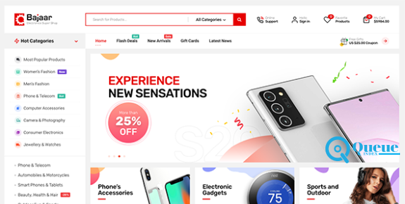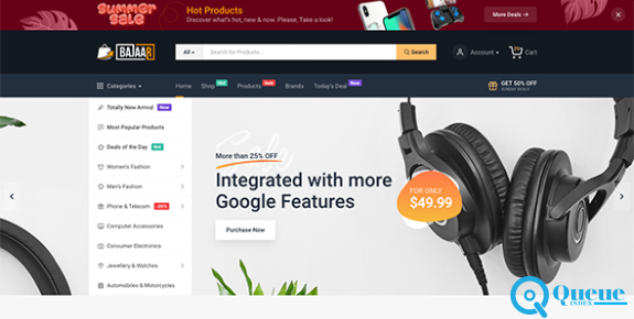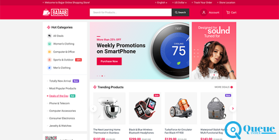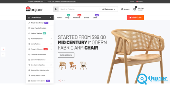 Bajaar is a flexible and fast-loading WooCommerce theme with the latest trendy design and user-friendly functionalities. Bajaar provides plenty of elements and powerful features that can configure all you want Like Shopengine WooCommerce Builder to build and customize the single product page, cart page, archive page, checkout page, order page, my account page, and thank-you page from scratch. Also comes with product comparison, wishlist, quick view, and variation swatches that are badly needed for a user to develop minimal or large e-commerce stores. No need to waste valuable time looking for other WordPress WooCommerce themes. Get ready to show your creativity and start the development process of your attractive eCommerce store with the Bajaar theme.
