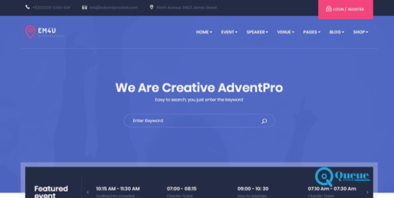 EM4U – Event Tickets WordPress Theme is a responsive modern template for Event Ticket, Event Theme, Conference, Event Agency, Meetup, Webinars, Business, Marketing, Ads, Music Event, Sport Event.